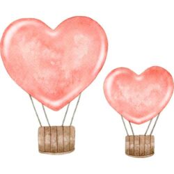 ふたつ並んだ虹柄と雲柄の気球のイラスト